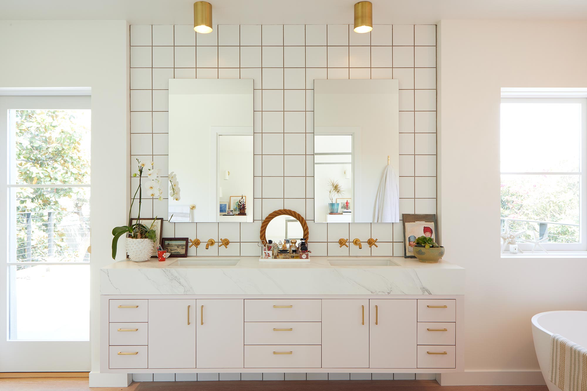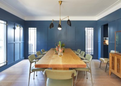 The current owners acquired this two-story property with an eye to renovate and modernize existing improvements, much of which were in original pre-war condition. All improvements were made with emphasis on respecting, augmenting and refining period details. The floor plan was totally re-imagined, opened up and reorganized to take full advantage of available natural light, view corridors and space flow. Key moves included the relocation of the powder room off the main hall to create a strong uninterrupted central axis from the main entrance to the rear garden. The kitchen was relocated to the rear of the building next to a renovated and re-built family room. Natural materials were used throughout in conjunction with the addition of steel doors and windows. The second floor bedrooms, bathrooms and master suite were completely renovated.
