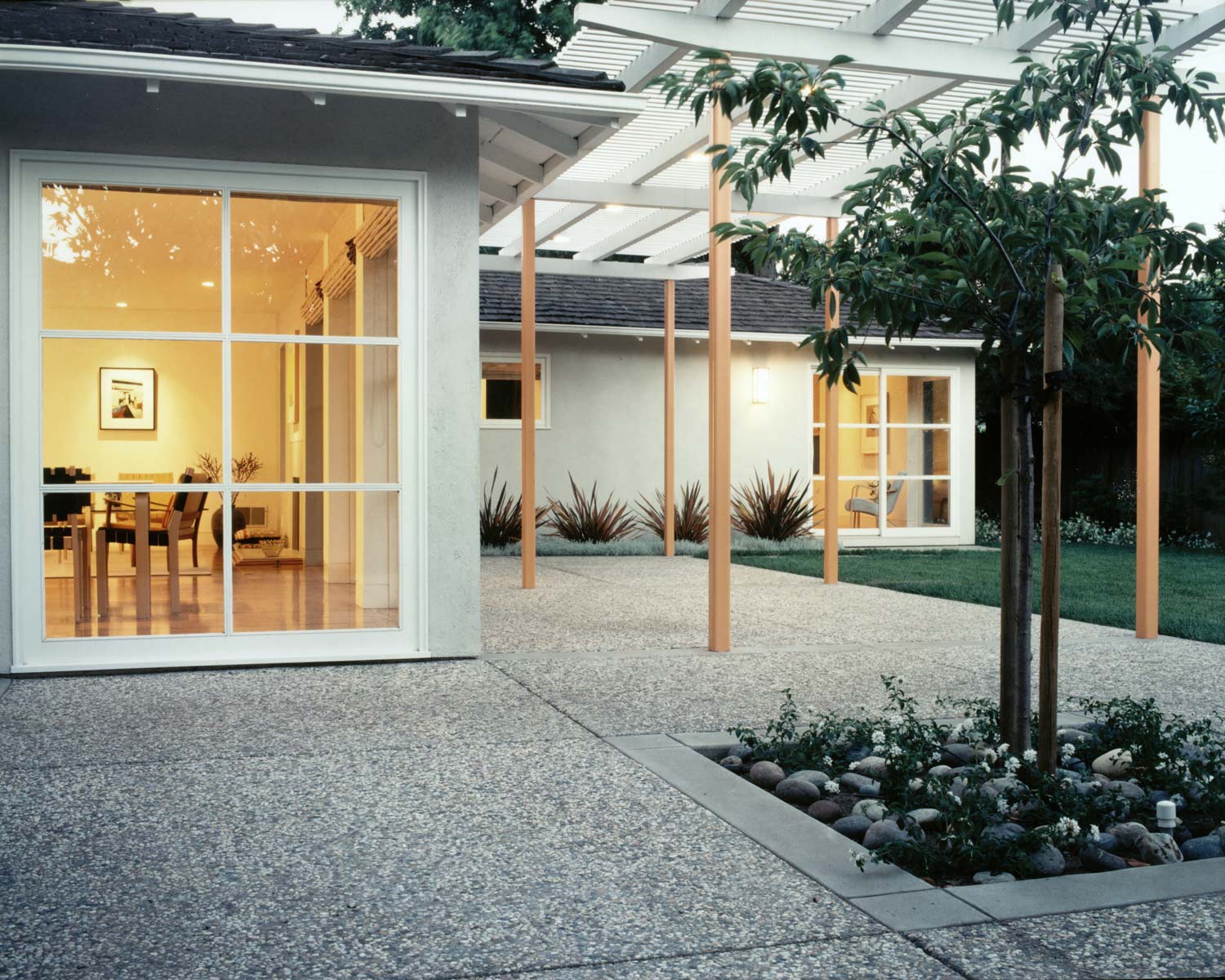 Constructed originally in 1952 and located in the shadow of Sunset Magazine’s historic headquarters building, this property is emblematic of the classic ranch home design made famous by architect Cliff May. Acquired in its original condition, the owner’s sought to renovate and expand the home to modern standards with strict adherence to its classic design and indoor/outdoor orientation. Architecture is by Bruce Avico, AIA and interiors are by AOY, incorporating the use of vintage and custom furniture and textiles.