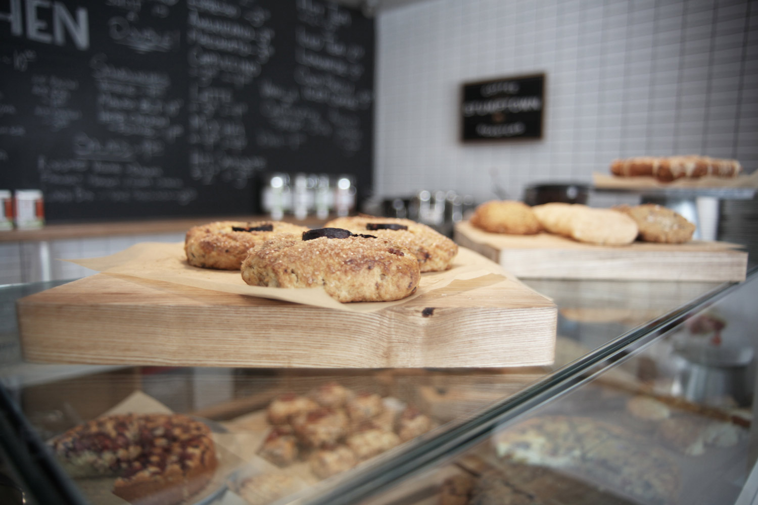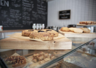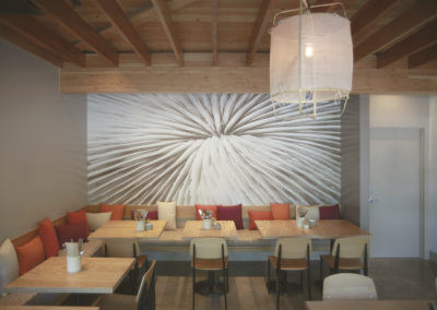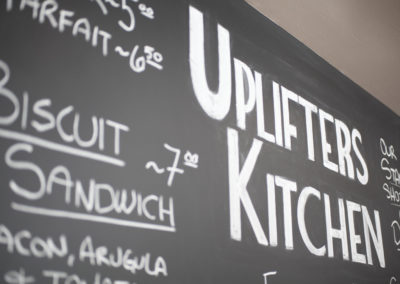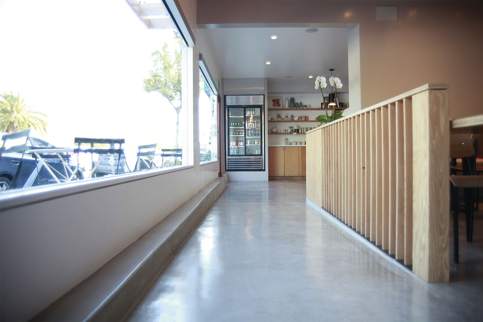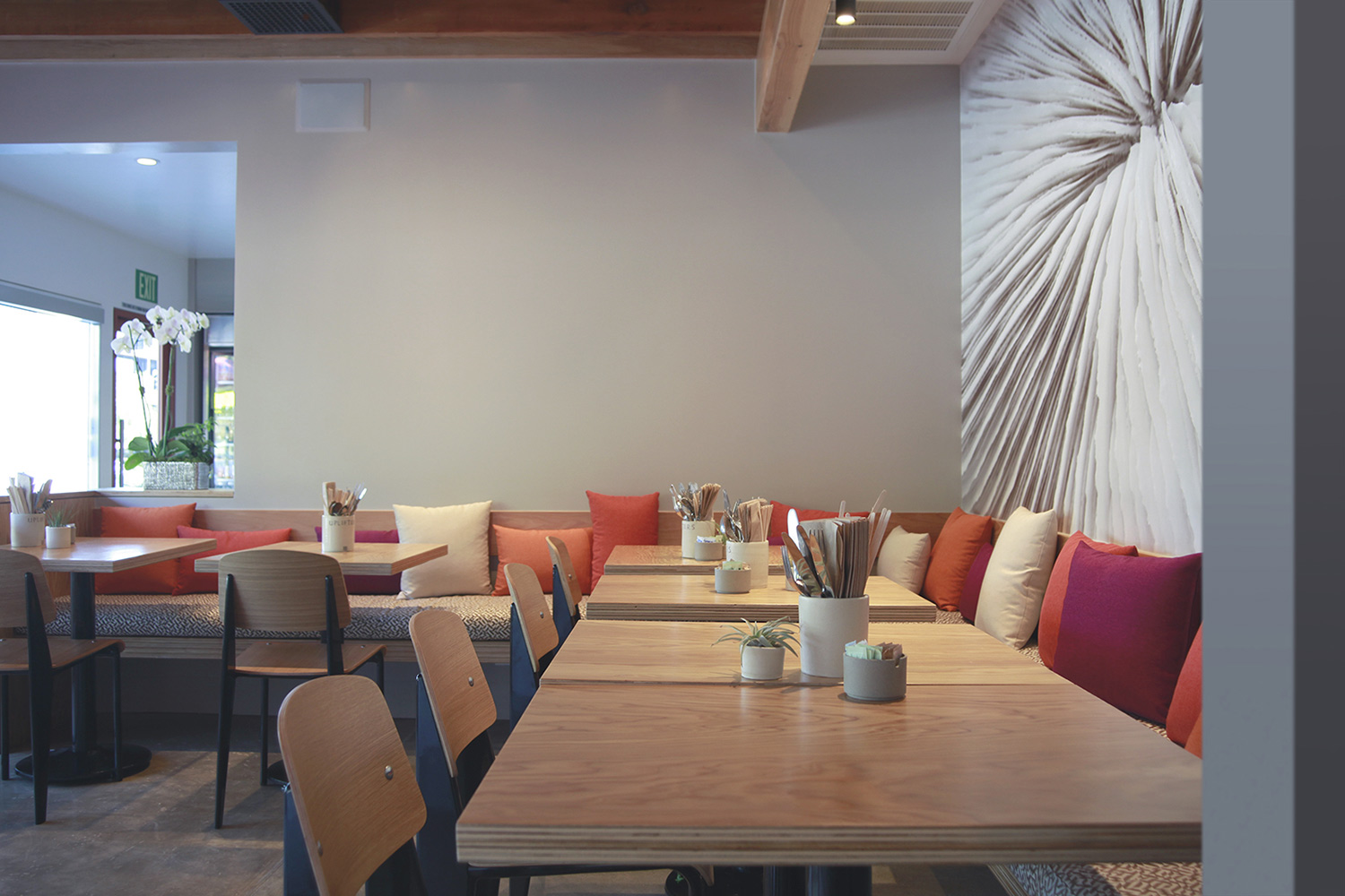 AOY partnered with Uplifters Kitchen in 2014 to design and build a new artisanal cafe serving the Ocean Park district of Santa Monica. The space was completed in two phases in which two adjoining storefronts were completely re-built, renovated and combined into a servery, dining room and commercial kitchen. The ceiling was raised to expose the building structure and the treatment of space throughout incorporated the use of natural materials, wood, tile and concrete to create a soothing and welcoming space for its guests. A feature wall in the dining room was treated with a striking graphic by Fliepaper, a collection of wall covering created by celebrity photographer, Don Flood.